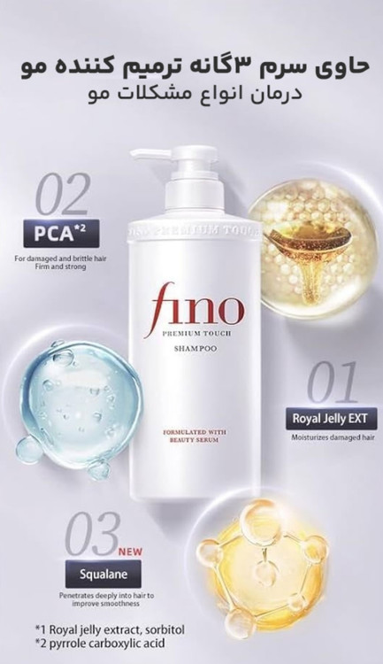شامپو ترمیم کننده و تغذیه کننده Fino این شامپو یک محصول عالی برای مراقبت از موهای خشک و آسیب دیده در اثر تغییرات آب و هوا، رنگ، دکلره و… است. این محصول با ژل رویال EX برای مرطوب کردن، PCA (پارا کلروآمفتامین) برای